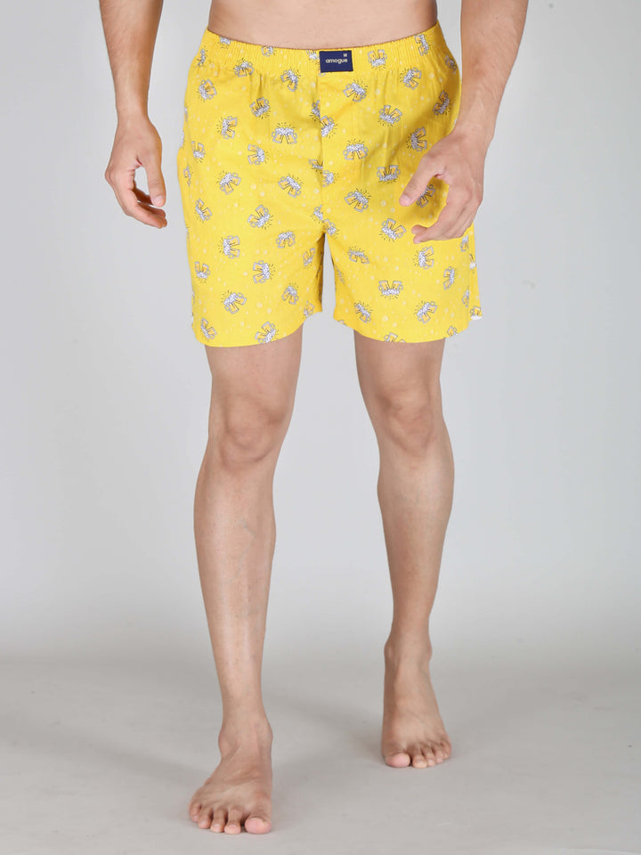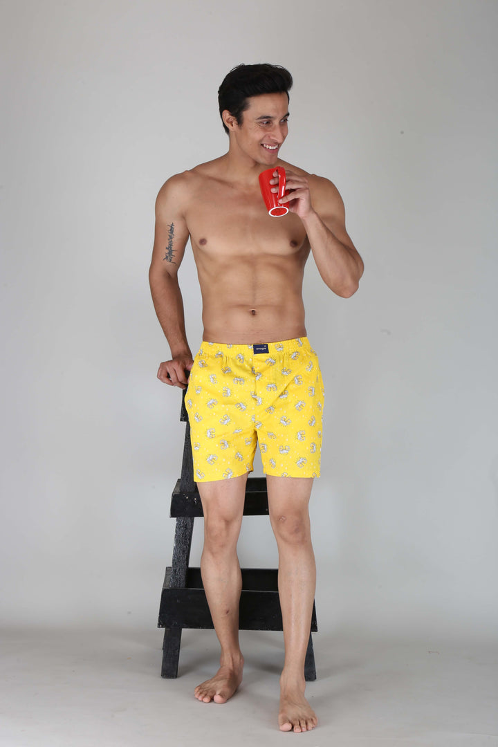 Yellow Beer Printed Cotton Funky Boxer For Men